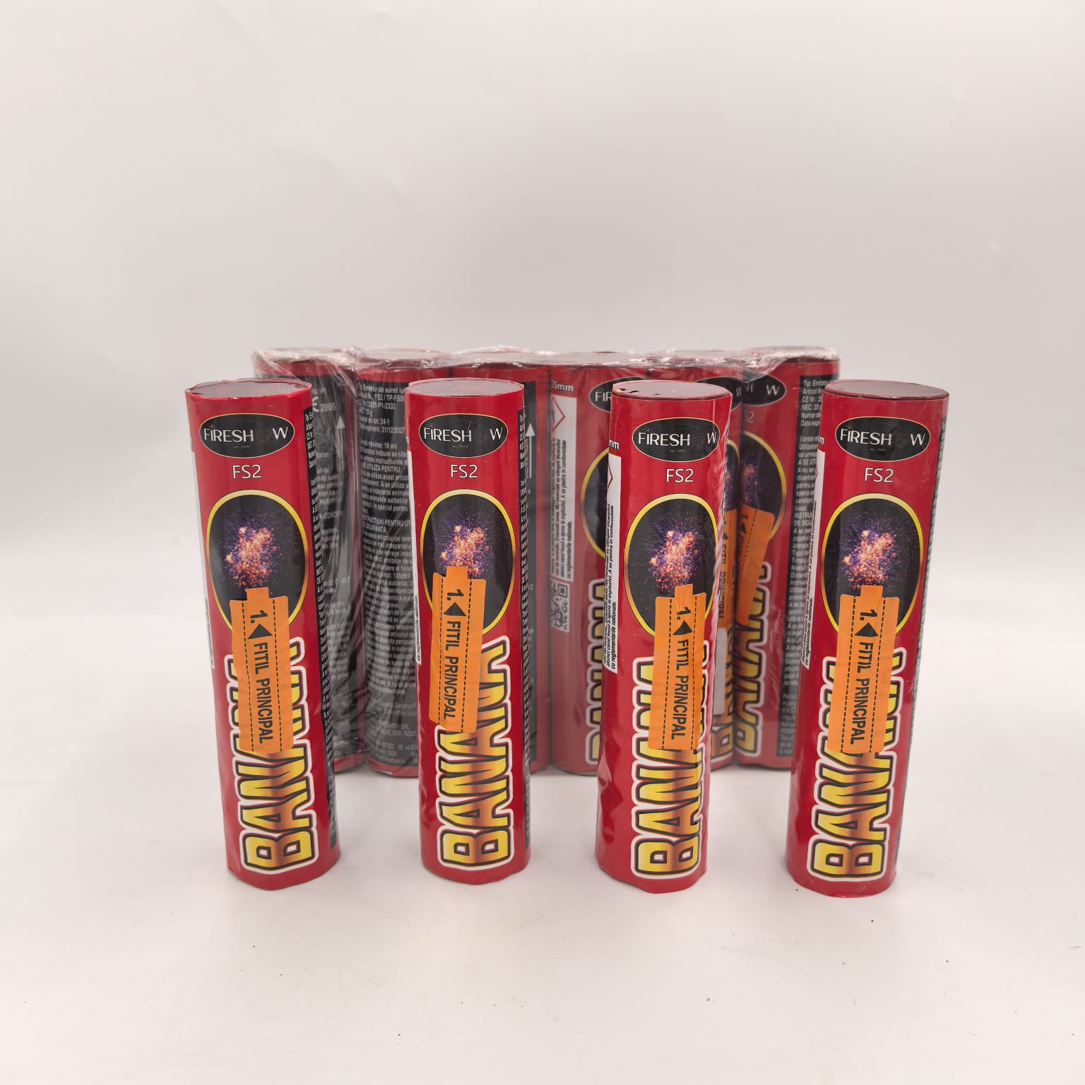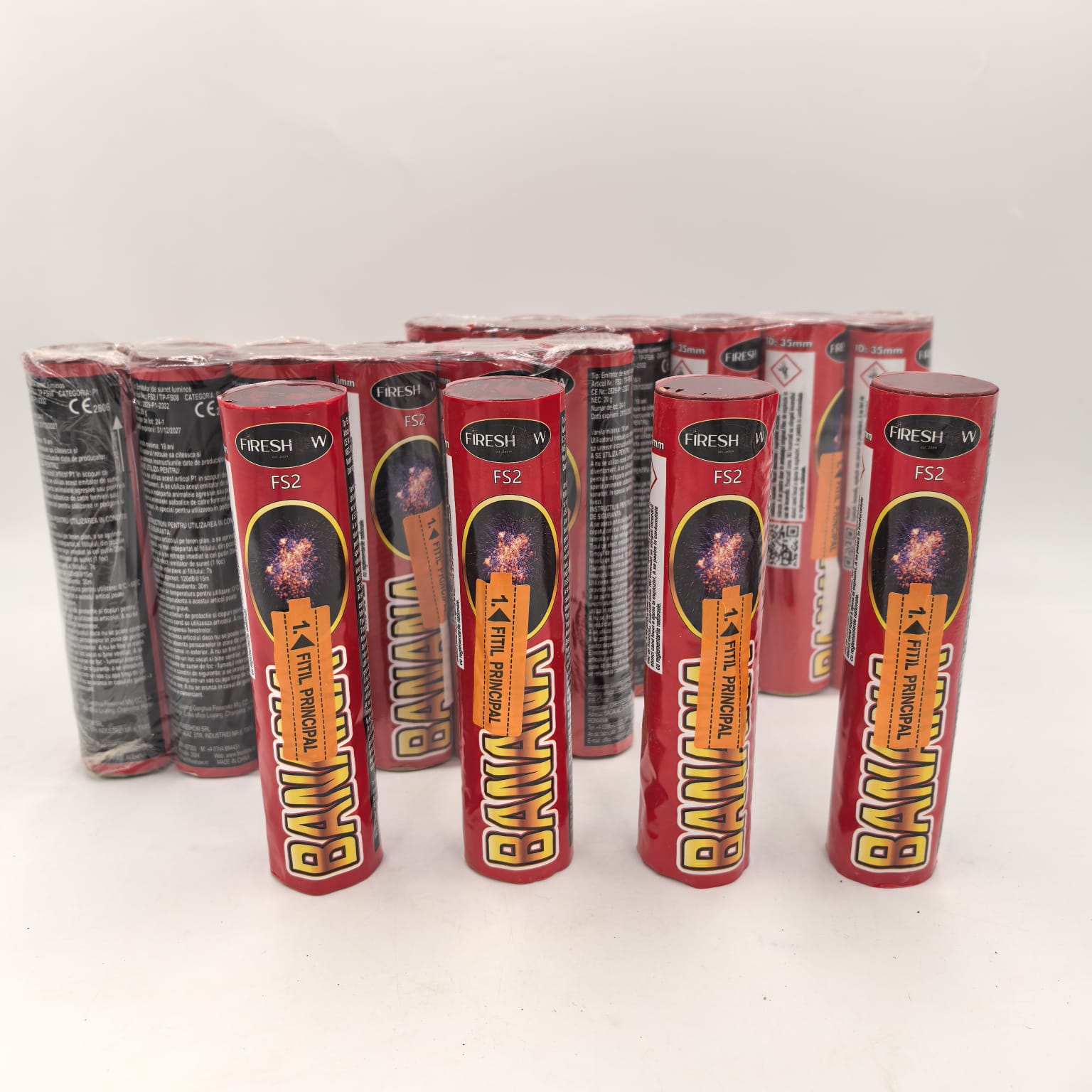 Setul BANANE FS 2 aduce protecție și siguranță în spațiile exterioare cu 6 emițătoare de sunet luminos de înaltă calitate. Aceste articole sunt esențiale pentru fermierii și profesioniștii care doresc să îndepărteze animalele agresive și să protejeze culturile. Cu un nivel de sunet de 120 dB și un efect vizual ce atinge până la 55 m înălțime, BANANE FS 2 oferă un spectacol puternic și eficient. Utilizarea produsului este sigură dacă se respectă instrucțiunile – așezarea pe teren plat, aprinderea fitilului și retragerea la o distanță de siguranță de 15 metri. Purtați mănuși de protecție și dopuri pentru urechi pentru o experiență fără riscuri.